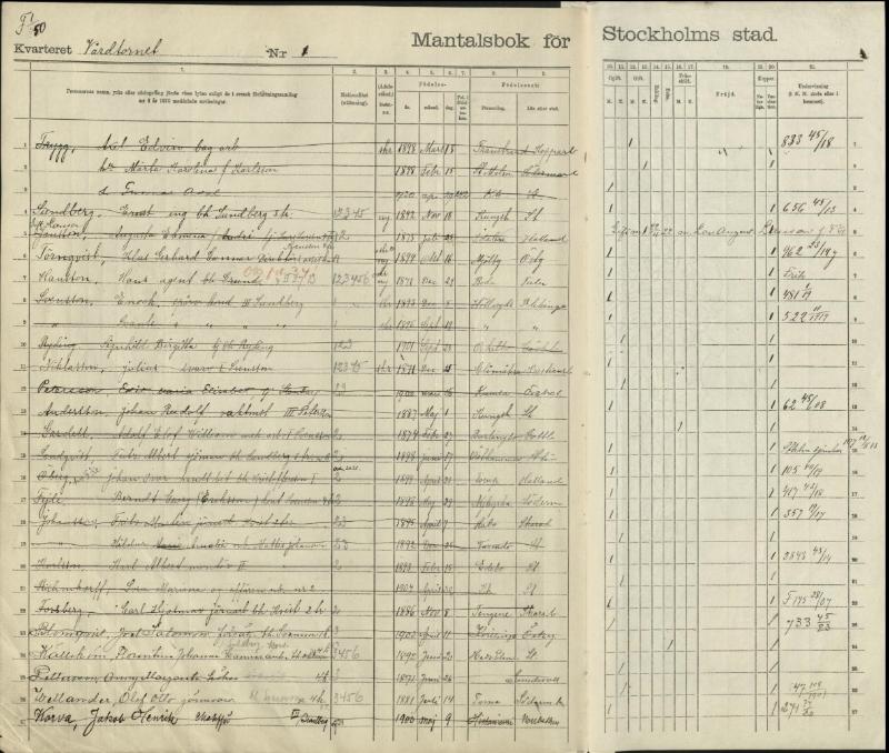 | Bosatt (17–19) | från 1915-05-27 till 1918-01-27 Kungsholmen, Stockholm |