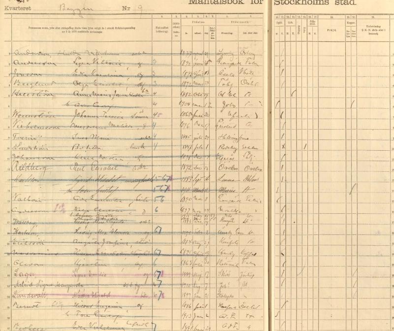 | Bosatt (≈19–≈20) | från 1916 till 1917 Rörstrandsgatan 20,Vikingagatan 19 |